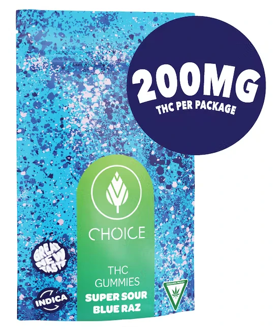 Choice - SUPER SOUR Blue Raz Gummies 200MG (10x20MG)